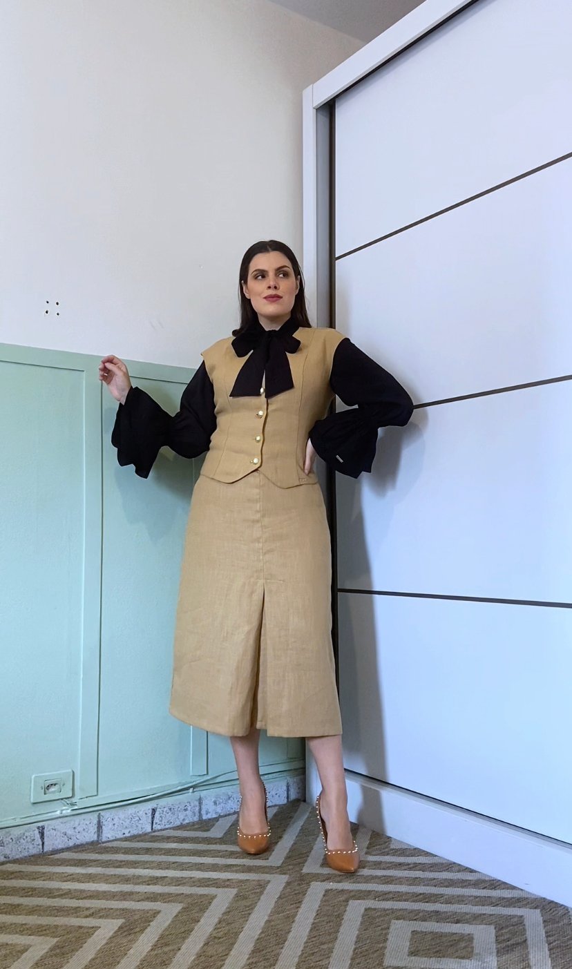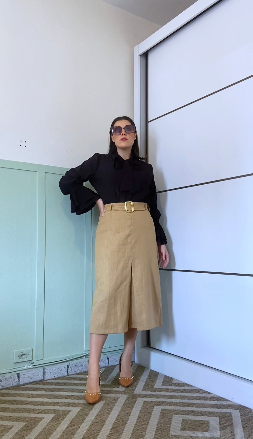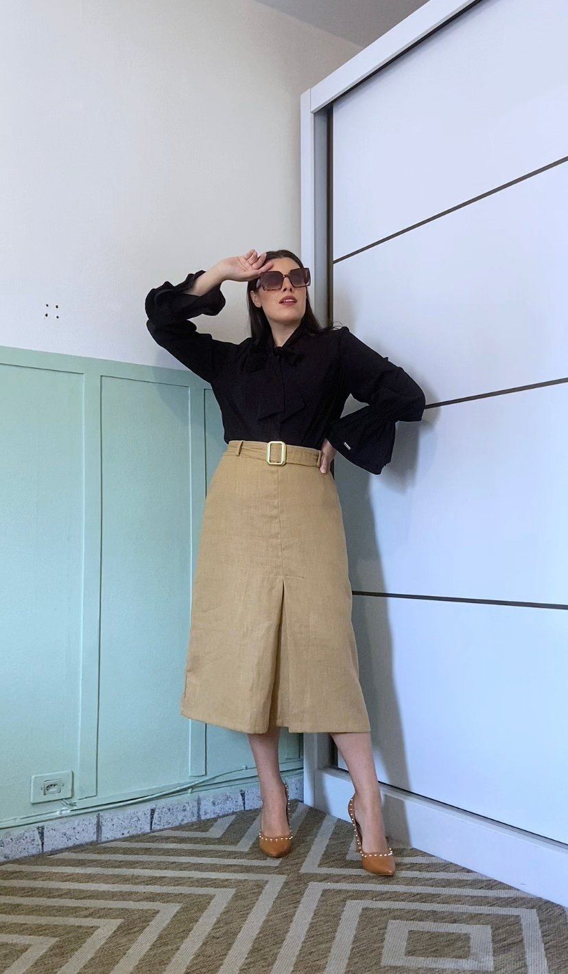• Abertura Frontal na Barra: Uma abertura frontal de 12 cm na barra proporciona fluidez e movimento, além de facilitar combinações com diferentes peças do seu guarda-roupa.