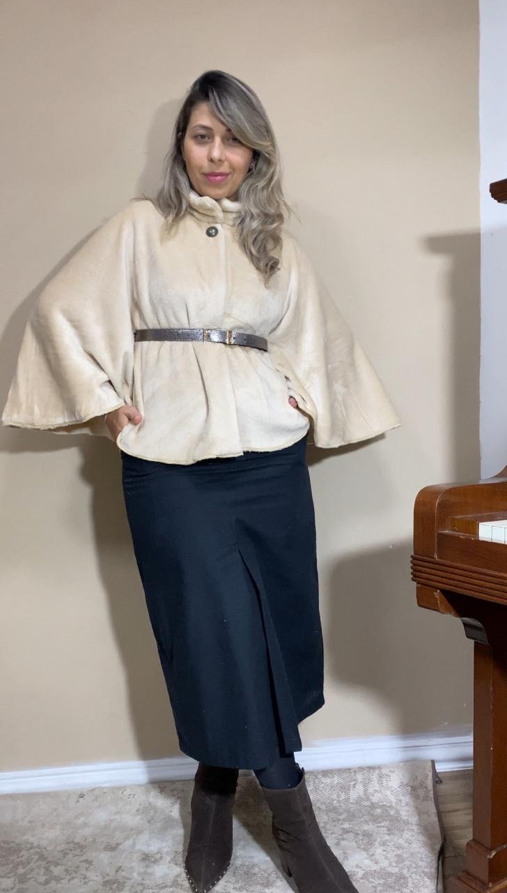 A Capa Marina traz o charme atemporal das peças de inverno com um design prático e autoral. Confeccionada em tecido de pelos com textura suave, possui gola alta estruturada com botão funcional e abertura discreta para o uso de cintos, permitindo diferentes formas de uso e silhuetas.