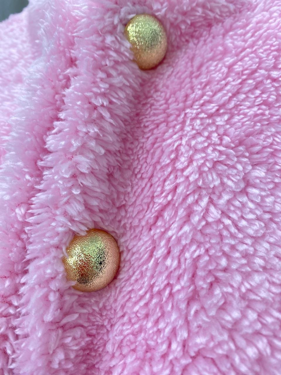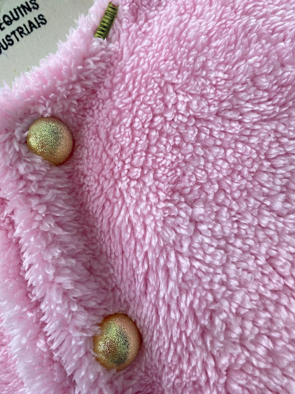 – Casaco curto em pelo rosa claro