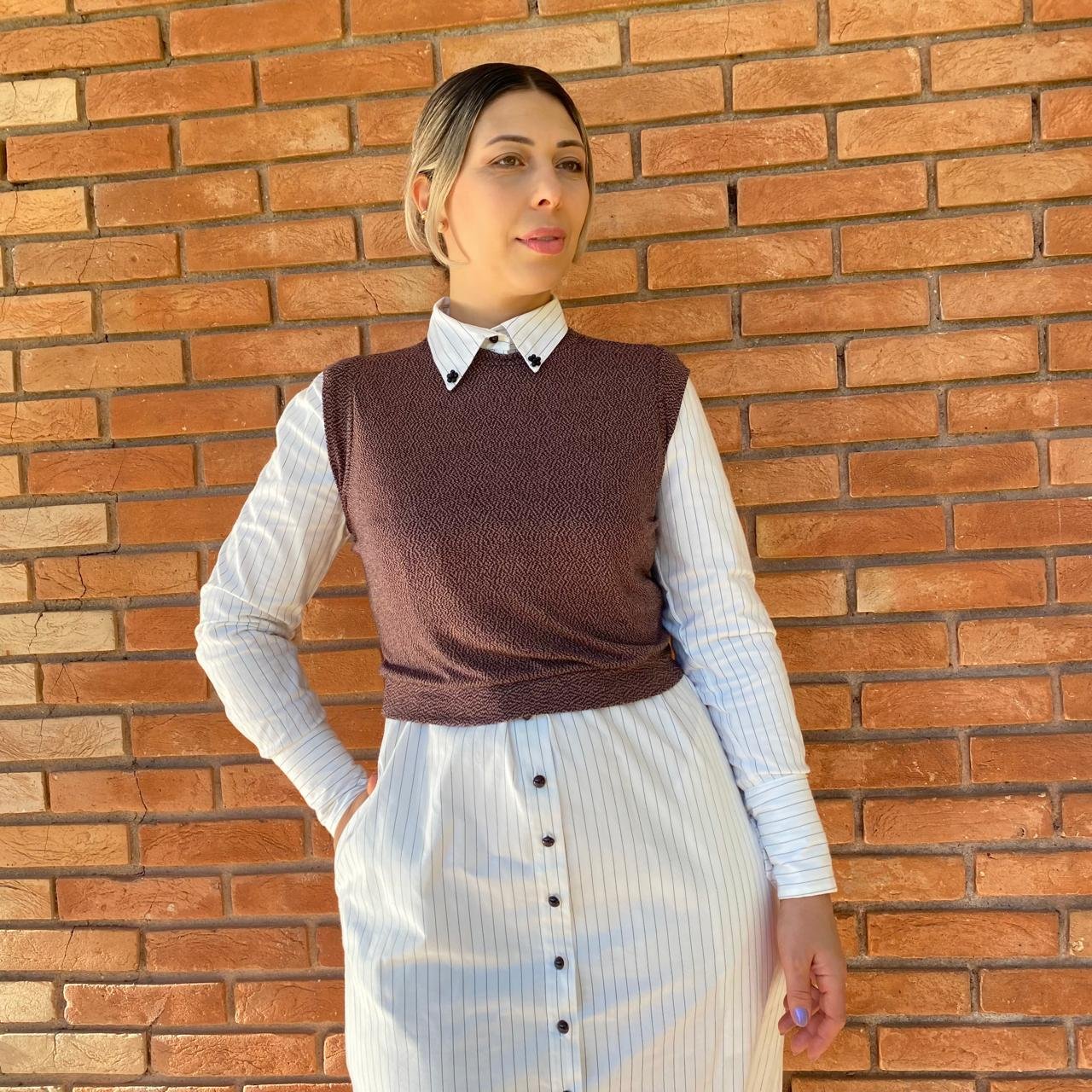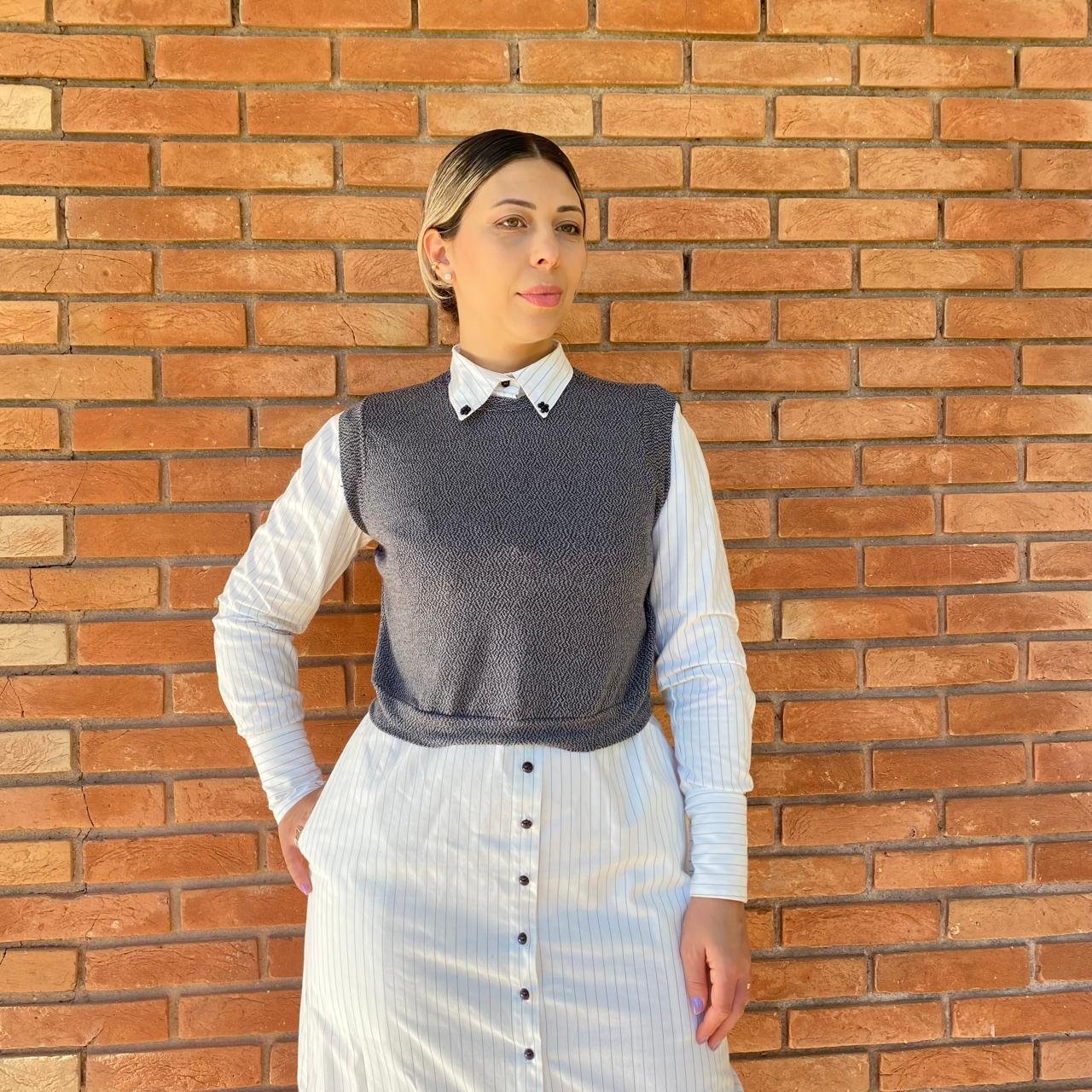 Com comprimento cropped e modelagem soltinha, é ideal para sobreposições com camisas, blusas ou vestidos.