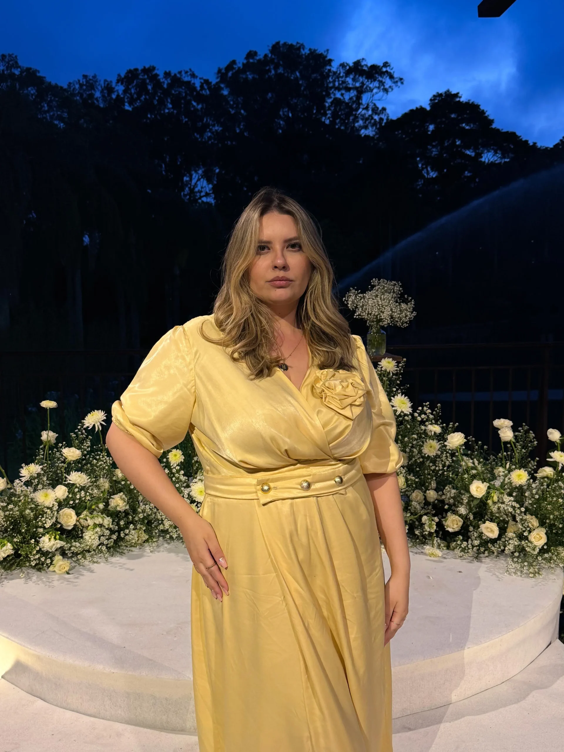 Acompanha Flor artesanal + Cinto, ambos de uso opcional.